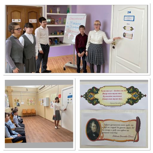 С целью повышения интереса к изучению родного языка в рамках месячника учащиеся 12 класса подготовили цитаты о родном языке татарских и русских классиков, оформили «литературный коридорчик» и провели беседу для учащихся младшего и среднего звена.