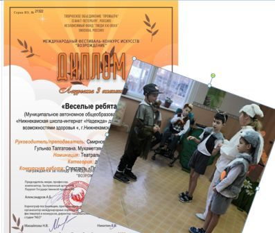 Учащиеся 2-х и 3го классов приняли участие в Международном фестивале искусств "Возрождение" со своим спектаклем "Приключение маленького котёнка" и награждены дипломом лауреата 3 степени.