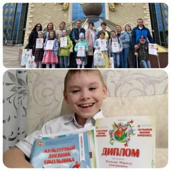 Искаков Маркел, ученик 1А класса - победитель муниципального этапа конкурса среди учащихся параллели 1х классов НМР в номинациях «Лучший культурный дневник школьника». Маркел и его родители стали участниками праздника в Казани. Маркел награждён дипломом победителя и ценным подарком.