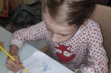 Ученица 1 подготовительного "Б" класса Суптеля Сабина приняла участие в проекте "Всей семьёй дома", нарисовав рисунок "Ма за чаем не скучаем".