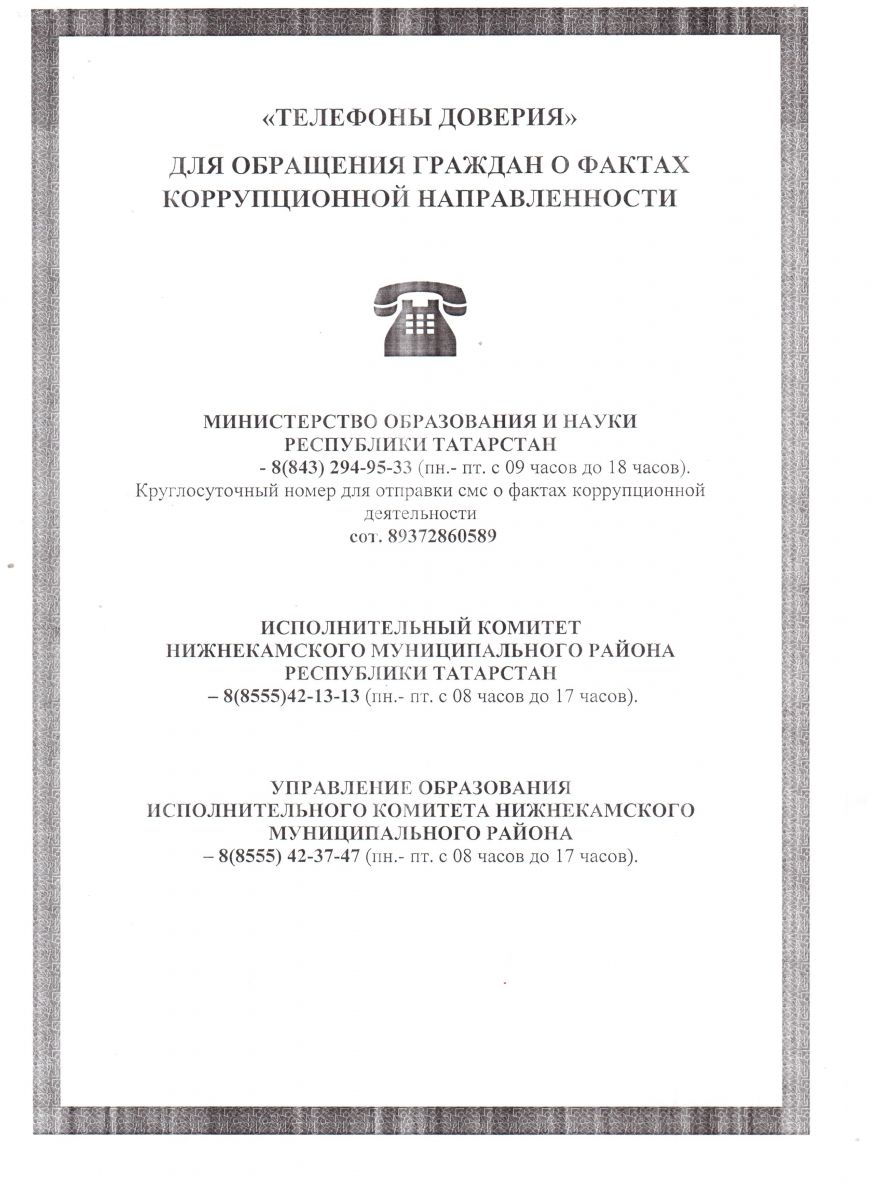 "Телефоны доверия" для обращения граждан о фактах коррупционной направленности