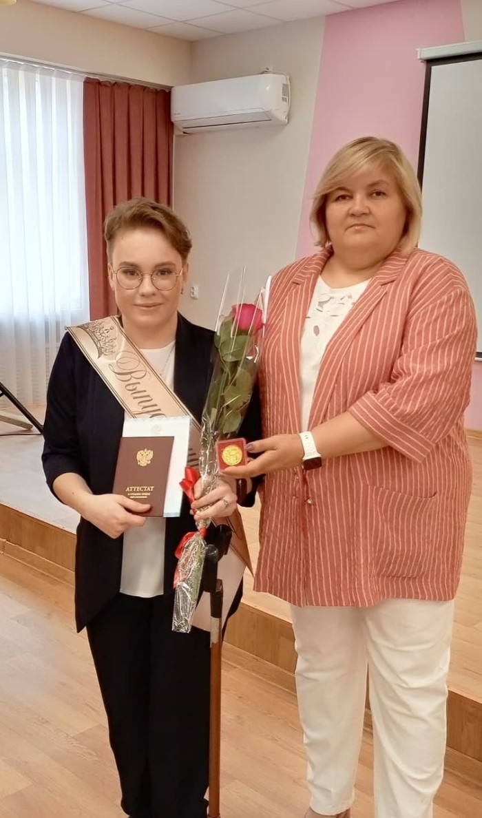 Опубликовано: 29.06.2025Сегодняшнее мероприятие явилось ярким завершением школьной жизни для наших выпускников 9- го и 12 -го классов- они получили аттестаты основного общего образования и аттестаты среднего образования. Аттестат с отличием и золотую медаль директор школы - Зайцева Людмила Александровна торжественно вручила ученице 12 -го класса - Сайфуллиной Лиане.