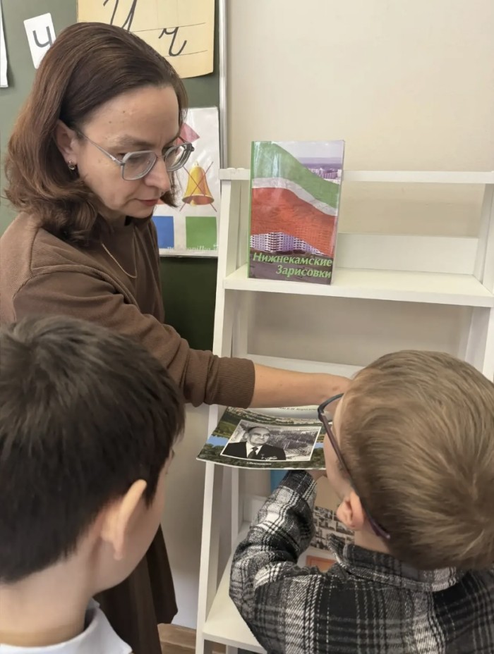 Опубликовано: 18.02.2026Узнали о значении герба и флага города. С удовольствием рассматривали книги и открытки с выставки, посвящённой г. Нижнекамску