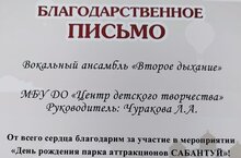 В праздничной концертной программе приняли участие наши воспитанники - вокальный ансамбль "Второе дыхание" и его солистки Ванифатьева Николь и Волкова Варвара (педагог Чуракова Л.А.)