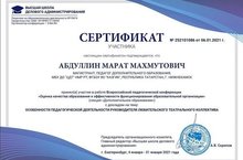 5 февраля 2021 года завершилась Всероссийская педагогическая конференция «Оценка качества образования и эффективности функционирования образовательной организации» в г. Екатеринбург. Педагог дополнительного образования МБУ ДО "ЦДТ" НМР РТ - Абдуллин Марат Махмутович стал участником данной конференции, выступив с научной статьей на тему "Особенности педагогической деятельности руководителя любительского театрального коллектива". Очень радостно, что данная статья Абдуллина М.М. вошла в 2-х томный сборник научных работ, выпущенный в рамках Всероссийской конференции. Поздравляем!