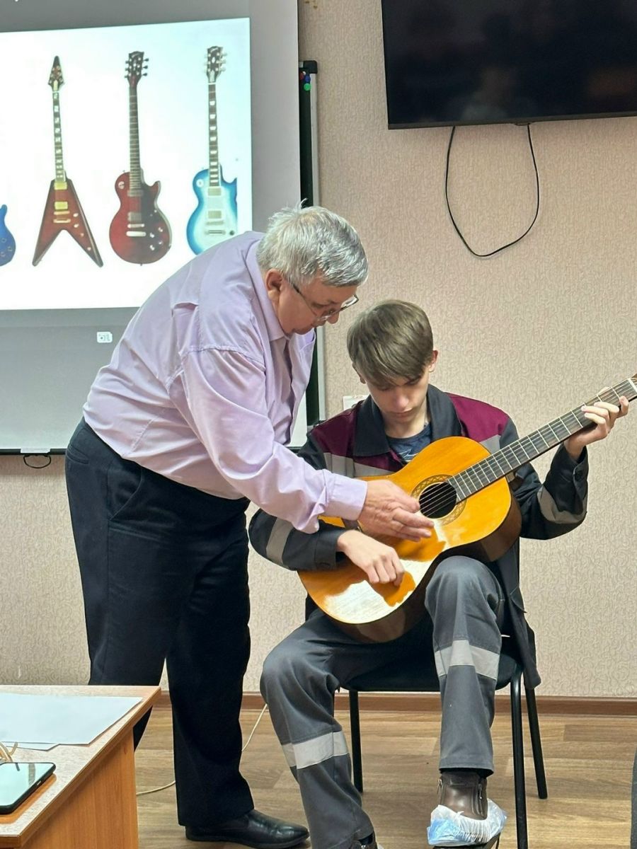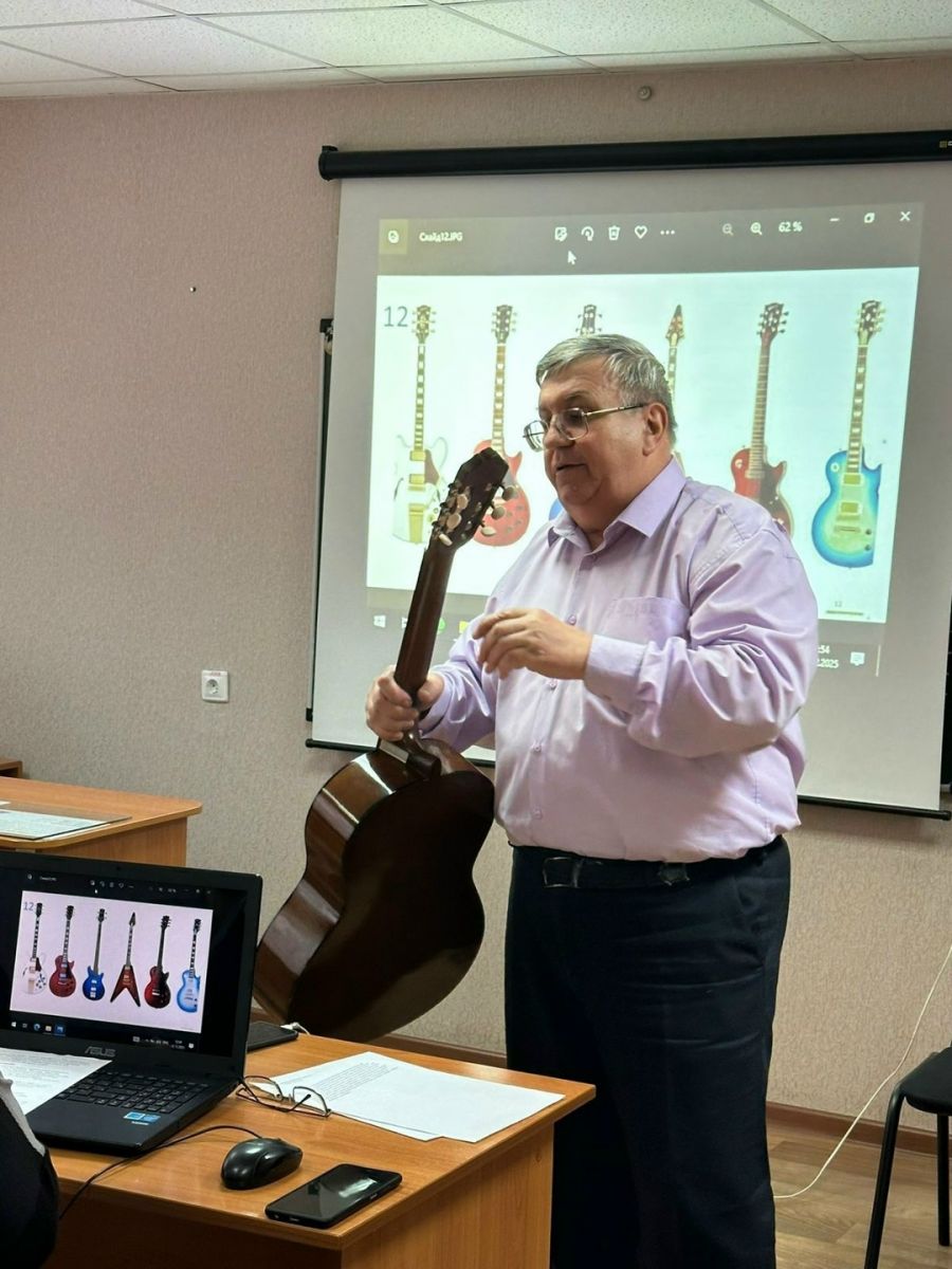 Опубликовано: 12.12.202512 декабря преподаватель Шестернев Сергей Викторович провел мастер-класс по гитаре с учащимися колледжа