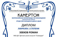 1 апреля стали известны результаты Всероссийской олимпиады по сольфеджио (музыкальной грамоте) среди обучающихся ДМШ и ДШИ «Камертон» (г. Волгоград, Волгоградский Государственный институт искусств и культуры), которая состоялась 13 марта.