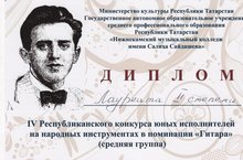 Струнный ансамбль (трио) стал Дипломантом Регионального фестиваля детского и юношеского творчества "Страна поющего соловья", который сотоялся в г. Альметьевск и собрал участников со всего Татарстана.