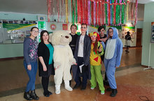 С самого утра в холле колледжа озорные и энергичные персонажи встречали сотрудников и студентов колледжа. Наши обучающиеся любят смеяться, любят подшучивать над другими, так что расшевелить их было не так уж трудно. Особенно когда все вокруг веселятся, шутят и смеются.