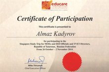 В ноябре 2014 г. состоялась стажировка представителей Министерства образования и науки РТ, Института развития образования РТ и руководителей СПО РТ в Сингапуре. Программа была содержательной, насыщенной и, самое главное, полезной! В составе делегации был и директор ГАОУ СПО «Нижнекамский агропромышленный колледж» А.К. Кадыров.