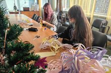 Первым делом студенты изготовили множество бумажных снежинок. С кропотливой точностью они вырезали ажурные узоры, вкладывая в работу творческий подход и внимание к деталям. Готовые снежинки аккуратно разместили на потолке — теперь они создают эффект невесомого снежного вихря, превращая обычное помещение в зимнюю сказку.