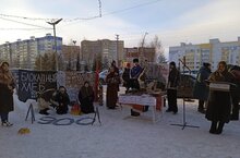 На открытой площадке возле торгового центра «Сити Молл» студенты агропромышленного колледжа организовали живую инсталляцию и выставку предметов того времени. Символом акции стал кусочек черного хлеба весом 125гр – такая минимальная норма была установлена в блокадном Ленинграде.