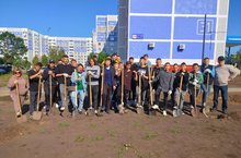 В рамках акции по озеленению города Нижнекамска студенты-волонтёры ГАПОУ "Нижнекамский агропромышленный колледж" приняли участие в подготовке лунок для посадки деревьев на улице Баки Урманче.