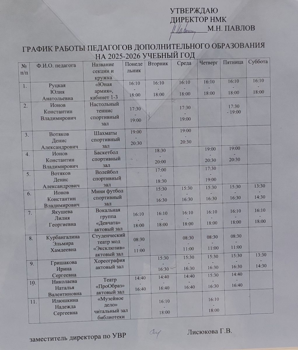 График работы педагогов дополнительного образования на 2025-2026 уч.год