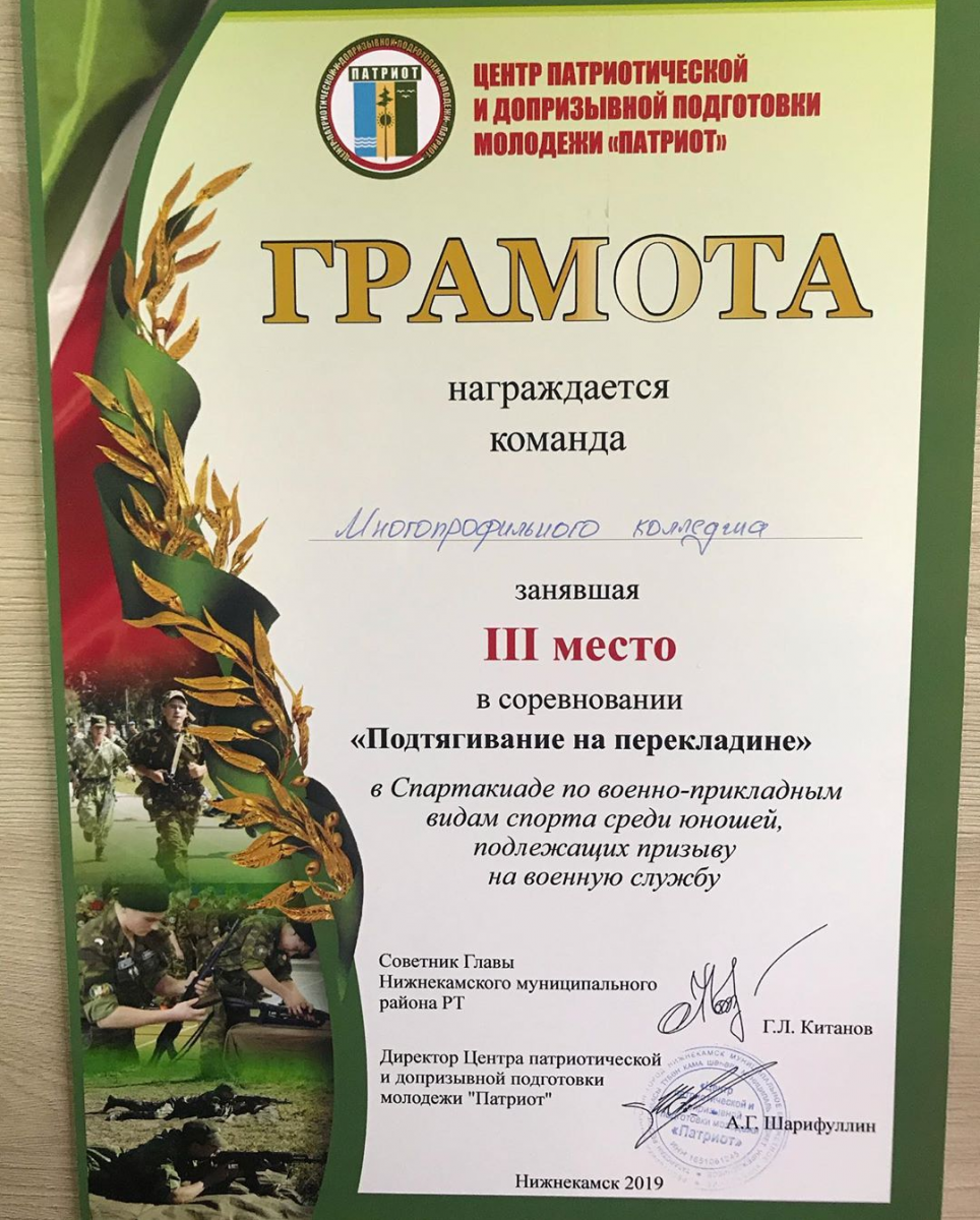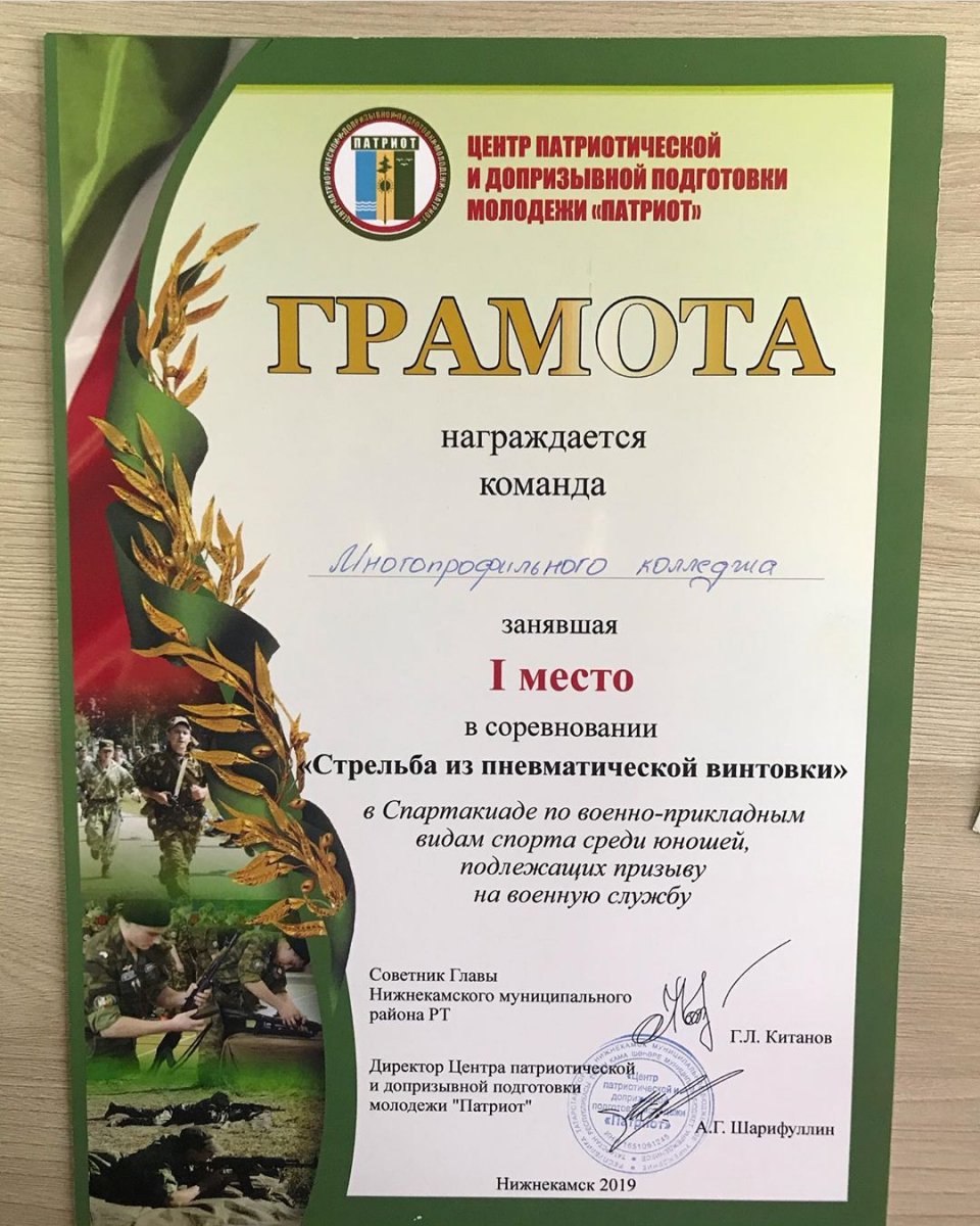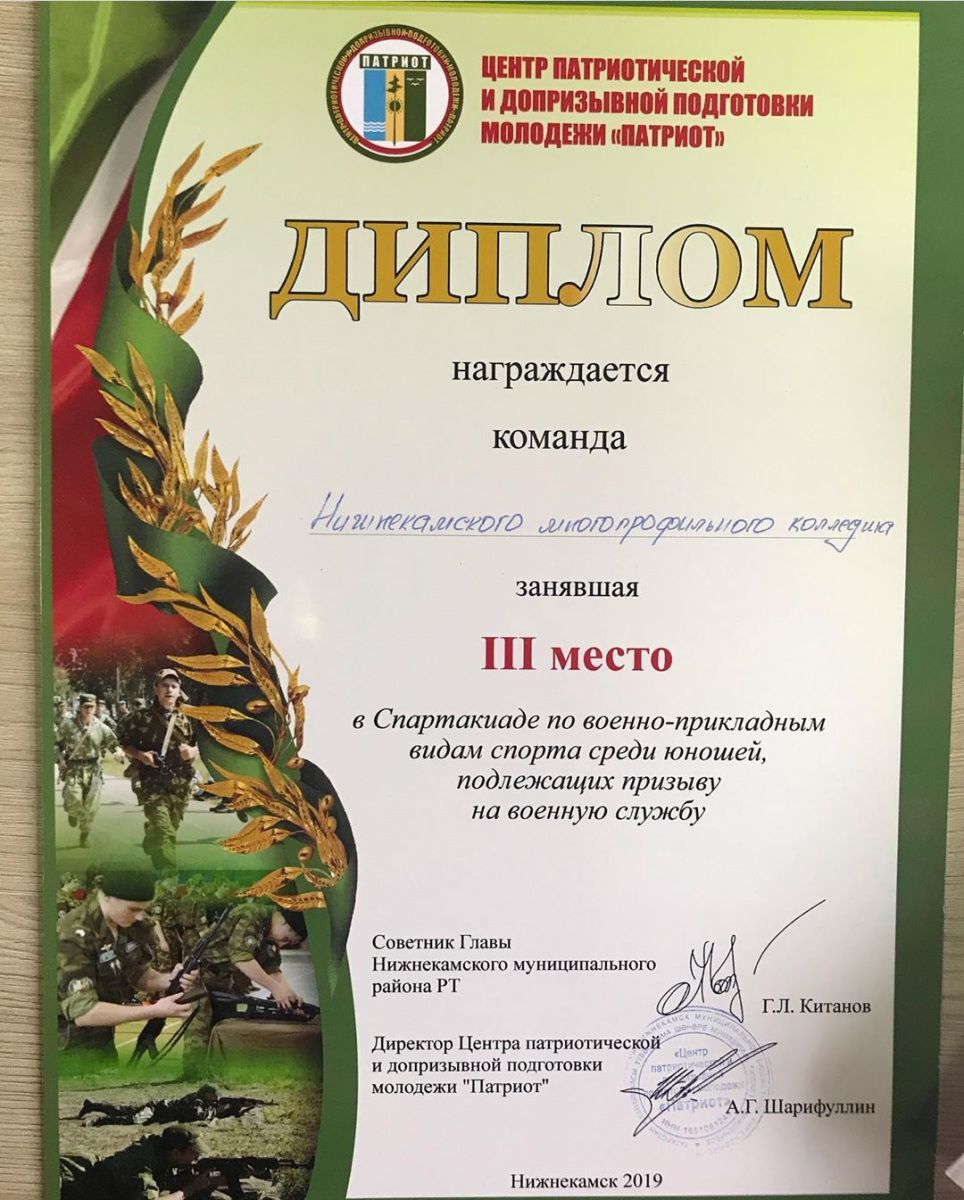 Опубликовано: 21.10.2019Вы спросите, что это, а мы вам ответим, это Спартакиада по Военно-прикладным видам спорта среди юношей подлежащих призыву на военную службу, где наши ребята заняли первые, вторые и третьи места. ПОЗДРАВЛЯЕМ!!!