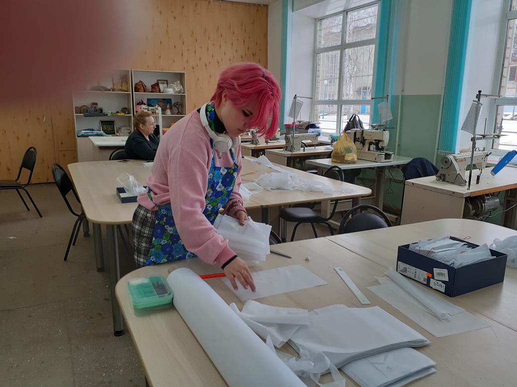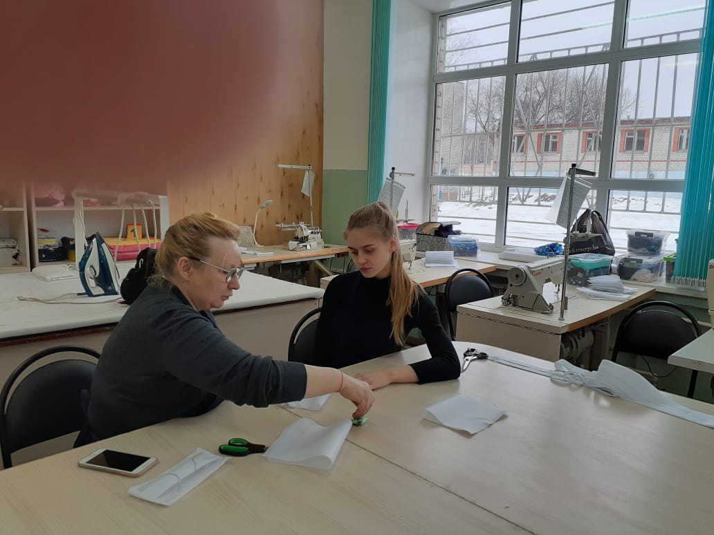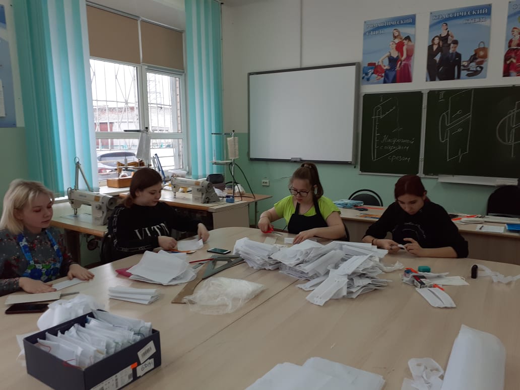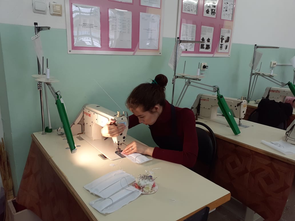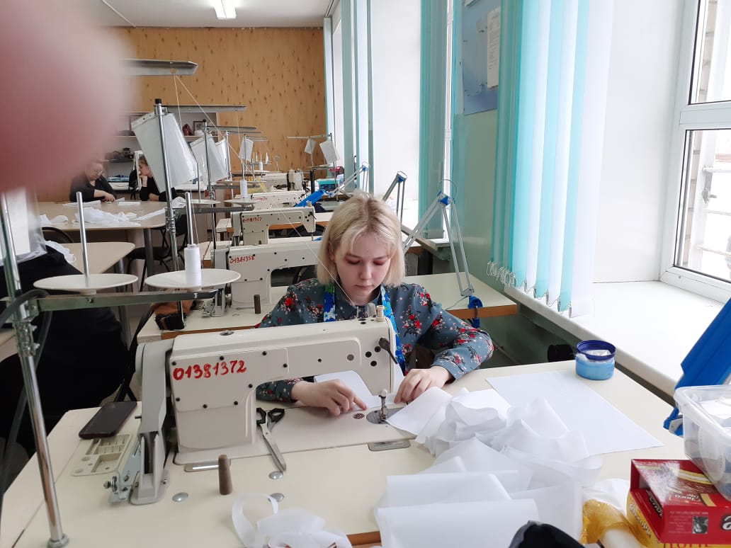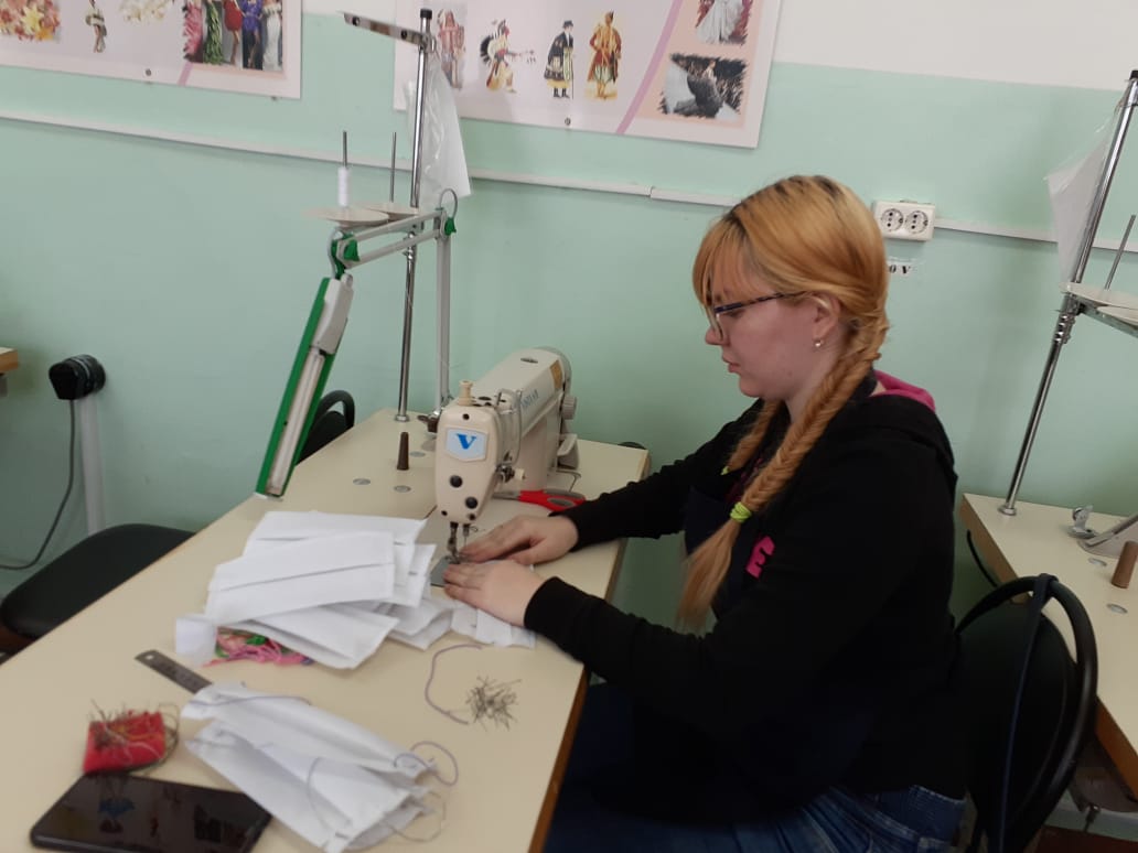 Сознавая сложную эпидемиологическую обстановку в стране и повышенный спрос на индивидуальные средства защиты, с 23 марта студентки групп П-3 и П-4, а также их мастера производственного обучения приступили к пошиву масок. Колледж, как и все образовательные учреждения города и республики перешел на дистанционное обучение. Однако учебную практику студенткам групп портных не отменили. В целях безопасности они разбиваются на несколько микро-групп и работают в учебно-производственной мастерской в отведённое время. В день изготавливается примерно 80-90 масок. Все изделия обязательно приглаживаются паровыми утюгами. «Эта работа мне только в радость, - делится студентка Муслима Хурматуллина, - ведь на нас к тому же возложена большая ответственность и доверие, которое надо оправдать».