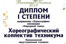 6 апреля 2018 года в КСК КФУ «УНИКС» в городе Казань прошел гала-концерт творческого фестиваля среди студентов среднего профессионального образования Татарстана «Весенняя капель-2018». "Нижнекамский индустриальный техникум" был награжден Дипломом 1 степени в номинации "Народный танец"