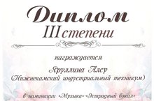 27 марта 2016 года на базе ОЛ «Чайка» прошел смотр-конкурс художественной самодеятельности среди работников предприятий нефтехимического комплекса ПАО «Татнефть, в котором принимал участие творческий коллектив студентов нижнекамского индустриального техникума.