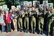 ????Мы несли портреты погибших наших ребят от Монумента Победы до Памятника воинам- интернационалистам возле 1 школы.
