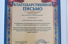 Студенты ГАПОУ Нижнекамский политехнический колледж имени Е.Н.Королёва Сайфутдинова Камиля и Осипова Валерия получили Благодарность за труд, за добросовестное отношение и качественную работу по комплектации изделий и инструментов от оборонно-промышленного комплекса АО РЕМДИЗЕЛЬ.