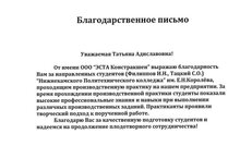ГАПОУ Нижнекамский политехнический колледж имени Е.Н.Королёва отмечен Благодарственным письмом за вклад в развитие студенческих трудовых отрядов Республики Татарстан.