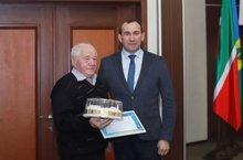 Руководитель Исполнительного комитета г.Нижнекамска Назмиев Камиль Римович вручил диплом в номинации "Новогодняя елка в стиле ретро" и сладкий приз Шарову Сергею Васильевичу активному жителю, который является образцом для молодого поколения,проживающий по ул.50лет Октября,5.
