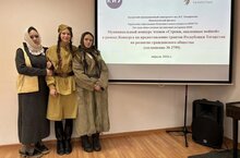Студентки 1 курса Шоленко Мирослава, Заикина Вероника и Биряльцева Анита на муниципальном конкурсе чтецов для студентов «Строки, опаленные войной» в КИУ им. В. Г. Тимирясова