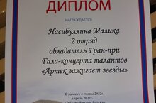 Студентка Политехнического колледжа имени Е.Н.Королёва Насибуллина Малика стала обладателем Гран-при концерта талантов "Артек зажигает звёзды".