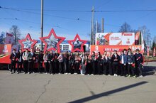 Группа студентов 241 специальность Строительство и эксплуатация зданий и сооружений с преподавателем Закировой Эльвирой Тимерхановной приняли участие в торжественном открытии Трамвая Победы.