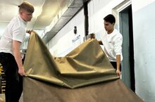 Студенты ГАПОУ Нижнекамского политехнического колледжа имени Е.Н.Королёва Руслан Мухарямов, Дмитрий Толстов, Илья Лабызкин оказали помощь в нарезке материала для маскировочных сетей!