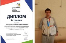 Диплом 1 степени по компетенции «Ремонт и обслуживание мотоциклов» - Лобусов Евгений;
