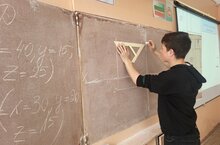 Ученик 8а класса Нурахметов Азат- работа на классной доске.
