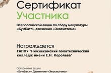️ГАПОУ Нижнекамский политехнический колледж имени Е.Н.Королёва принял активное участие во Всероссийской акции по сбору макулатуры "БумБатл", который проходит в поддержку национального проекта "Экологическое благополучие".