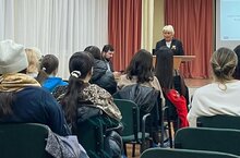 Студенты группы 245 , классный руководитель Елена Владимировна Куклева слушают очень внимательно...Вот она настоящая история жизни семьи, поколений, Страны.
