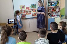 Библиотекарь рассказала ребятам о трудном военном времени, о подвигах наших солдат, о животных-героях.