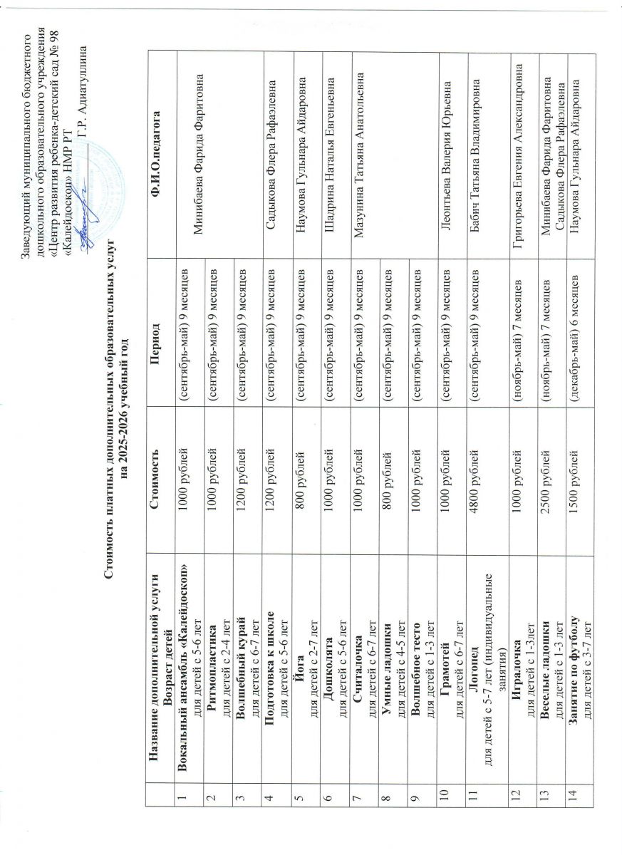 - Расписание платных образовательных услуг на 2025-2026 учебный год