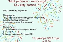 15 декабря 2022 года состоялось очередная встреча родительского клуба на тему:"Мой ребёнок непоседа! Как ему помочь?"