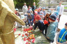 Дети старших, подготовительных групп вместе с воспитателями и родителями возложили цветы у монумента павшим в годы ВОВ п.Красный Ключ.