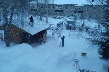 С целью обеспечения безопасности детей на прогулке в зимний период, папы группы "Аленький цветочек" почистили крышу на веранде, тем самым подав пример родителям других групп. Спасибо за помощь и заботу!!!