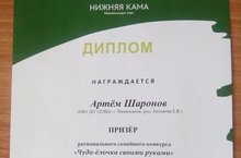 От всей души поздравляем нашего самого юного воспитанника Шаронова Артема с победой в региональном семейном конкурсе "Чудо - елочка своими руками", а также руководителя Антонову Е.В.