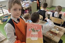 Воспитанники Владимира Анатольевича Кондратенко превратили учебный класс в настоящую художественную мастерскую. Ребята готовят подарки к Международному женскому дню.
