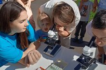 Наши педагоги организовали площадку, где взрослые и дети могли рассмотреть под микроскопом мир, скрытый от глаз человека. -