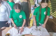 Слет школьных лесничеств Республики Татарстан «Сохраним лес вместе» – это мероприятие, объединяющее юных энтузиастов, увлеченных идеей сохранения и восстановления лесных богатств родного края.Педагоги Детского эколого-биологического центра (Фаттахова Л.З. и Ситдикова А.З.) организовали для участников слёта увлекательный мастер-класс, посвященный искусству экопринта на косынке.