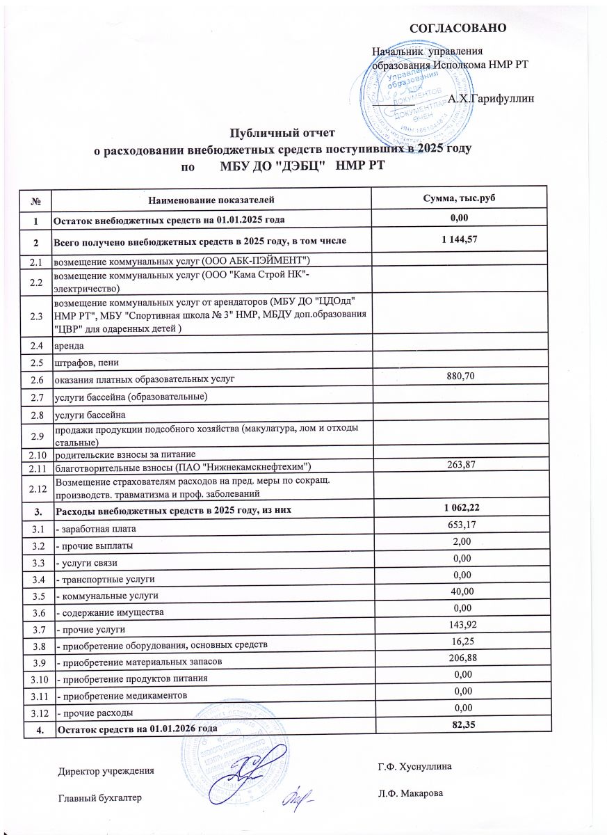 Публичный отчет о расходовании внебюджетных средств за 2025 год