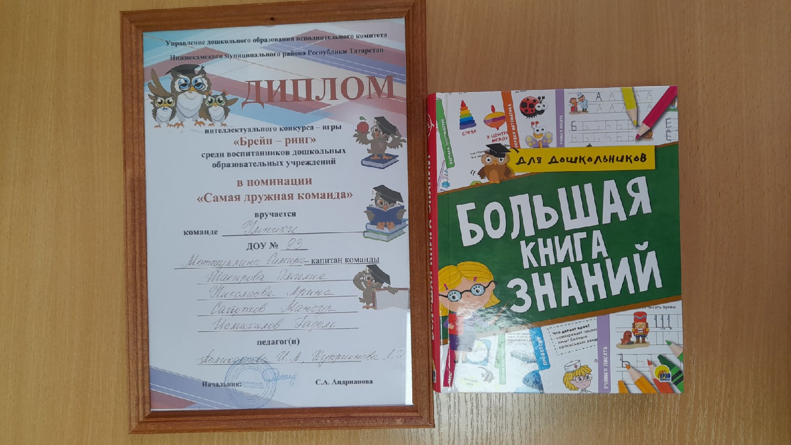 Опубликовано: 15.04.2022Сегодня на базе "ЦРР - детский сад N92 "Ладушки" прошел финал интеллектуальной игры Брейн ринг- 2022. От нашего сада принимали участие сборная воспитанников подготовительных групп "Умники" - Мотыгуллина Самира, Шакирова Эмилия, Николаева Арина, Садыков Мансур и Исмагилов Гадель. Наша команда награждена дипломом в номинации "Самая дружная команда". Поздравляем.