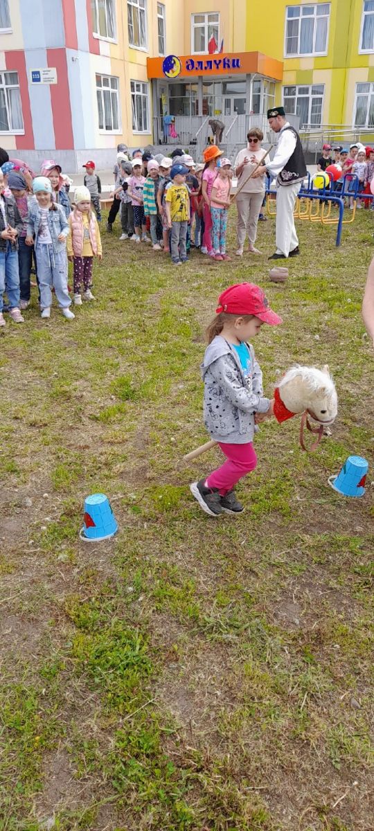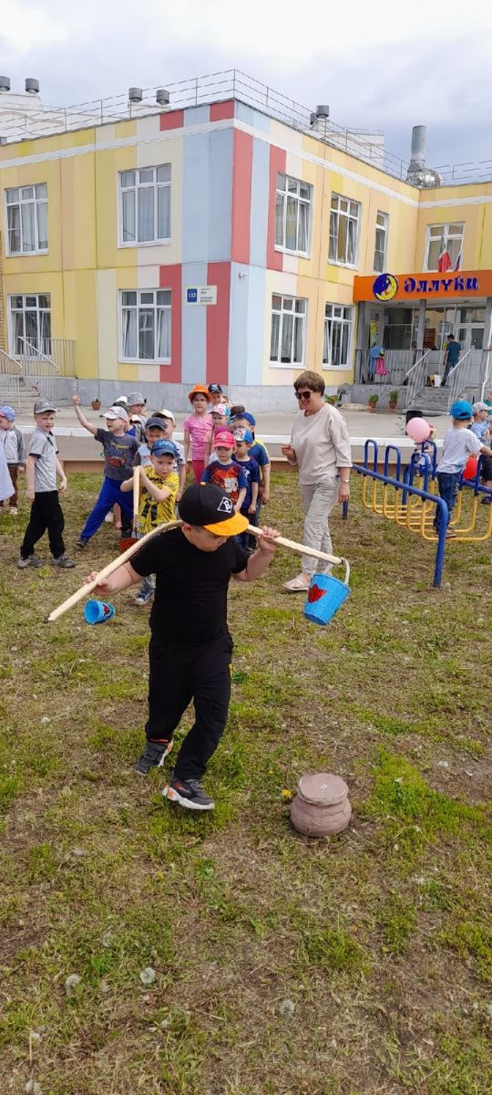 6 июня в нашем детском саду прошел веселый праздник "Сабантуй". В гости были приглашены актеры Нижнекамского театра .Ребята пели песни,читали стихи, играли в татарские народные игры: бег в мешках, разбивание горшка, бег с яйцом на ложке, скачки на лошадях «Наездники», «Кто быстрее донесет воду в ведерках», «Кто быстрее займет место".