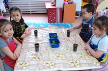 Через неделю после появления первых трех листьев саженцы пересадили в стаканчики, пролив обильно водой.