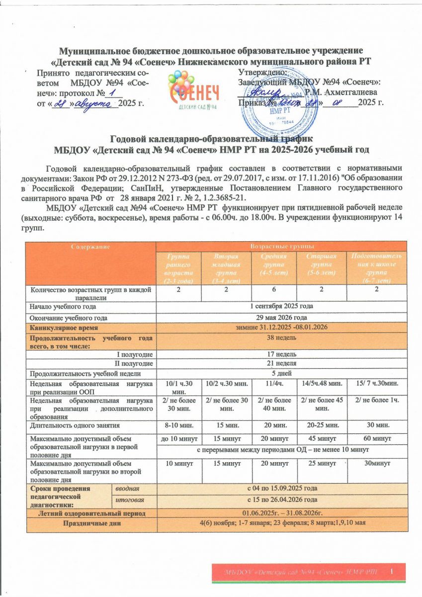 Годовой календарно-образовательный график на 2025-2026 уч.год