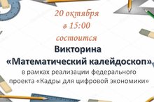 20 октября в 15:00ч. состоится Викторина "Математический калейдоскоп" в рамках реализации федерального проекта "Кадры для цифровой экономики"