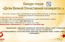 Дорогие друзья! Уже завтра завершается наш патриотический конкурс чтецов «Детям Великой Отечественной посвящается…» 08.05.2020